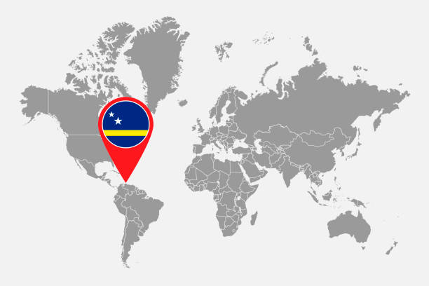 Pin Map With Curacao Flag On World Map Vector Illustration向量圖形
